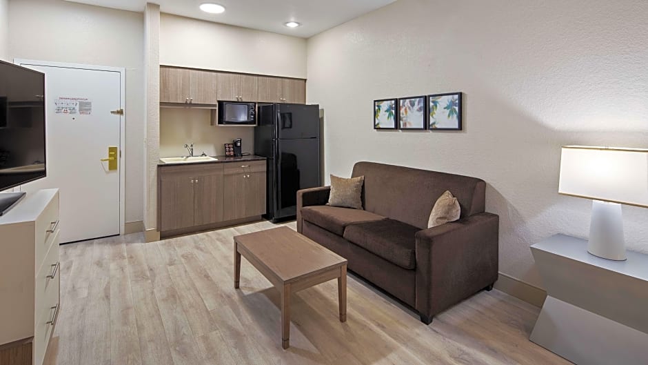 Offering free toiletries, this suite includes a private bathroom with a bath, a shower and a hairdryer. The suite's kitchen, which has a refrigerator and a microwave, is available for cooking and storing food. The suite features tiled floors, a seating area with a flat-screen TV with cable channels, air conditioning, a tea and coffee maker, as well as a wardrobe. The unit offers 3 beds.